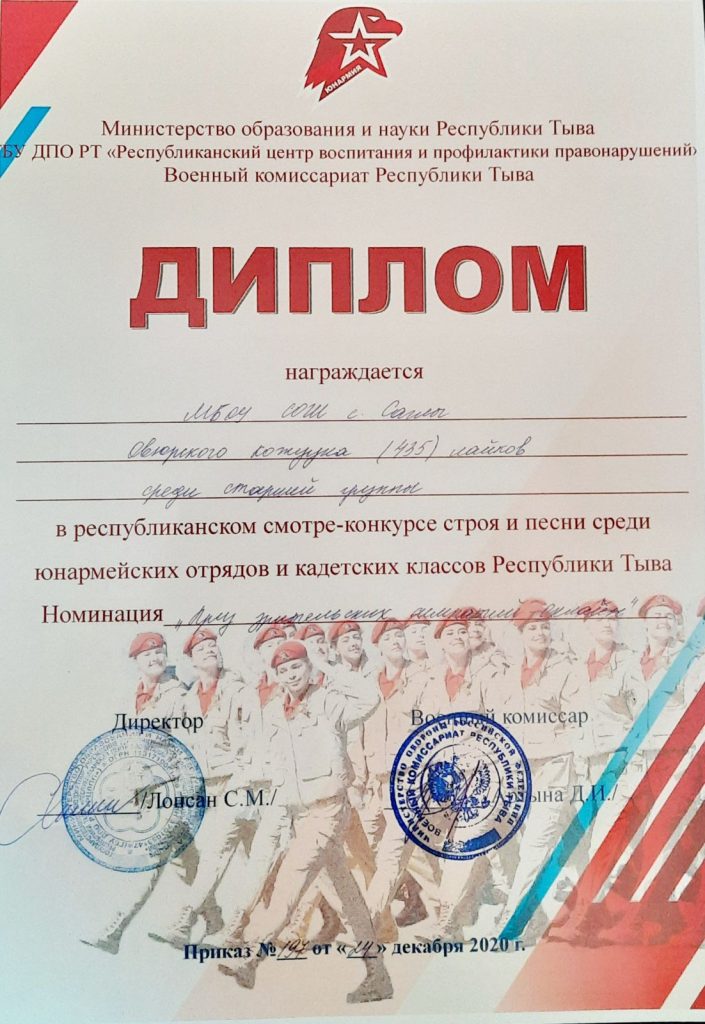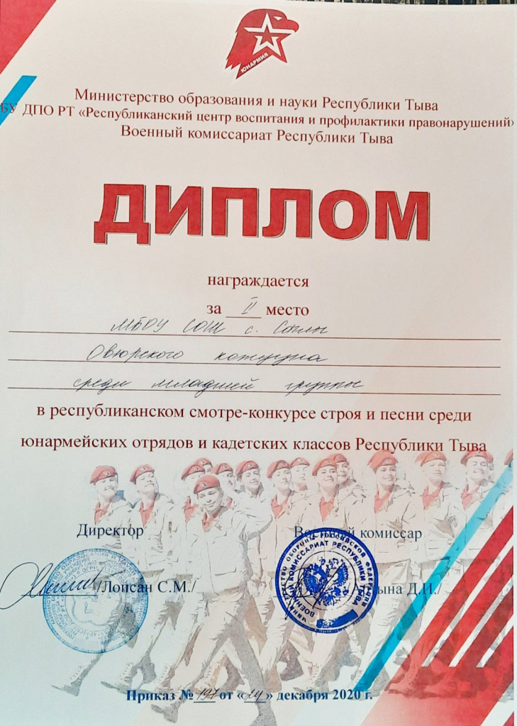 Поздравляем Юнармейцев за II место в республиканском смотре-конкурсе строя и песни среди юнармейских отрядов и кадетских классов Республики Тыва! Номинация «Приз зрительских симпатий онлайн»